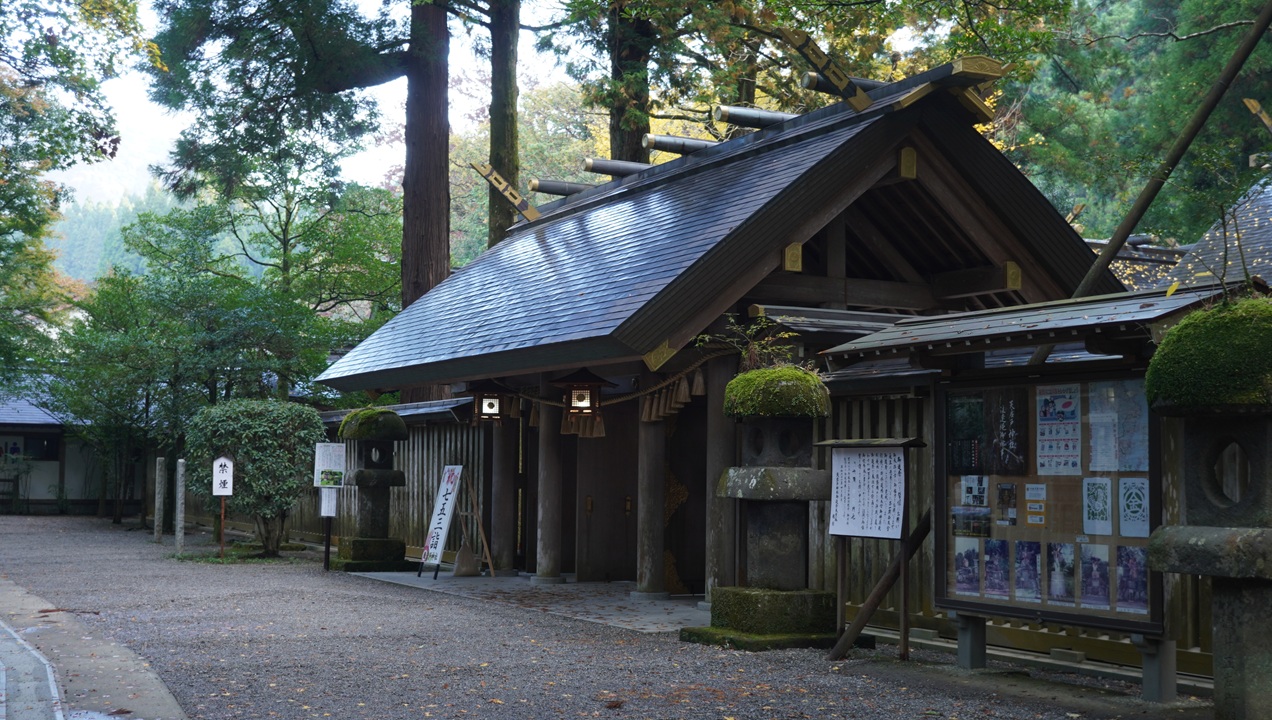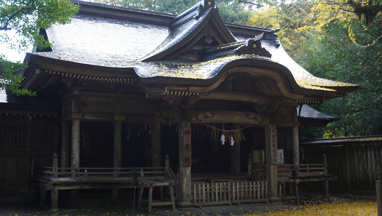 拝殿の左側に神楽殿(かぐら でん)があります。ここは天安河原(あま の やすがわら)の遥拝所でもあります。