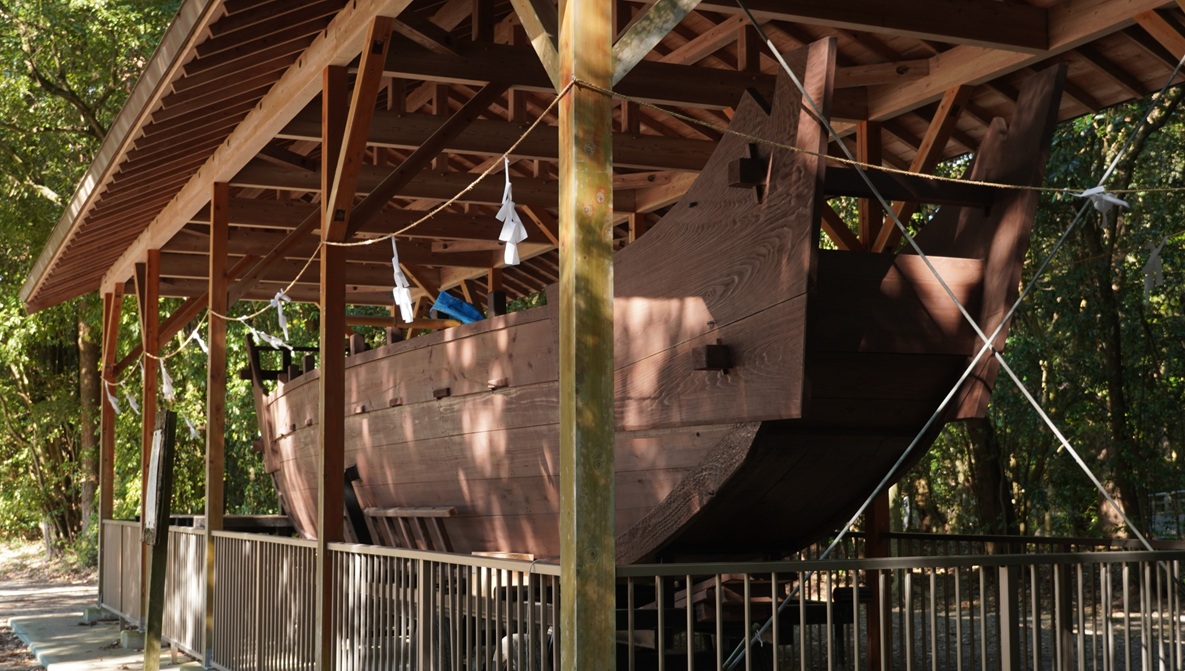 参道の西側に、初代・神武天皇の水軍船を復元した、古代舟・おきよ丸が展示されています。
