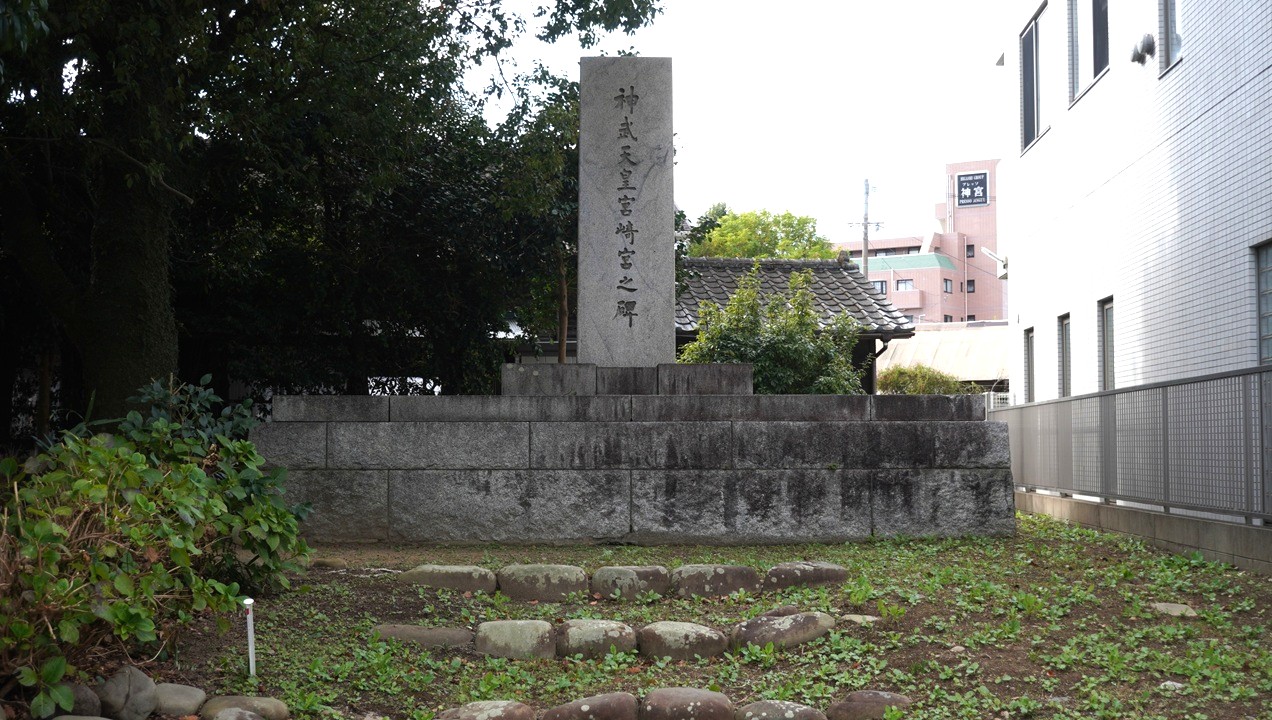 その近くに、神武天皇宮崎宮之碑があります。神武天皇の宮は、ここから約一kmほど離れた皇宮神社(こうぐう じんじゃ)に建てられたと言われています。