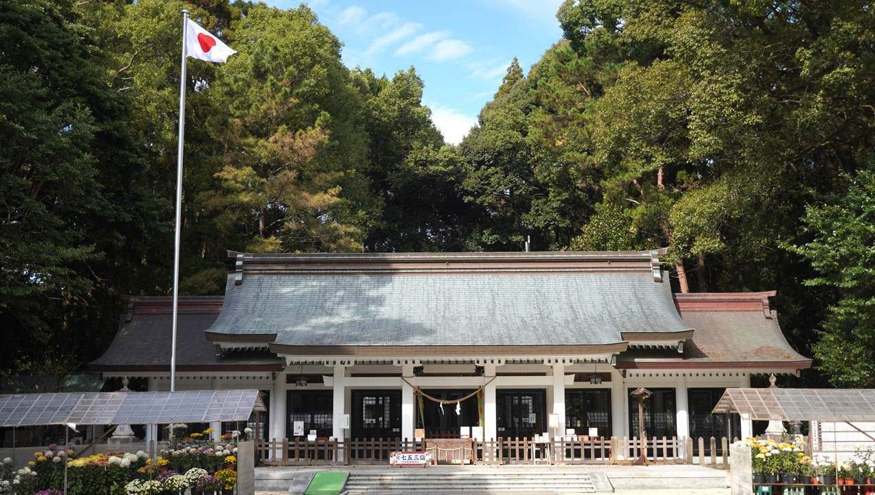 護国神社の拝殿を正面から望みます。御祭神は、国家公共に尽くした人の心霊