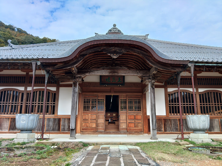 本堂を正面から。御本尊は1つの顔と2本の腕を持つ、聖観音菩薩(しょうかんのん ぼさつ)です。