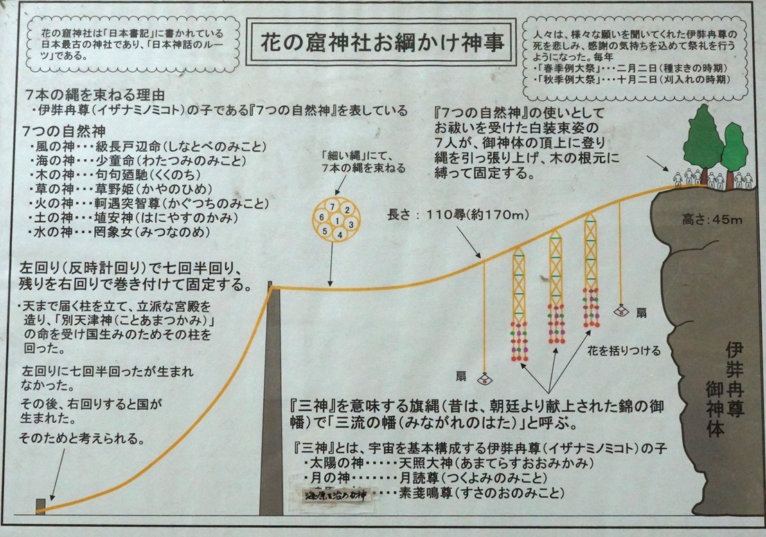 花の窟神社では、毎年2月2日の春の例大祭と、10月2日の秋の例大祭で、五穀豊穣と無病息災を願う「お縄かけ神事」が斎行されます。