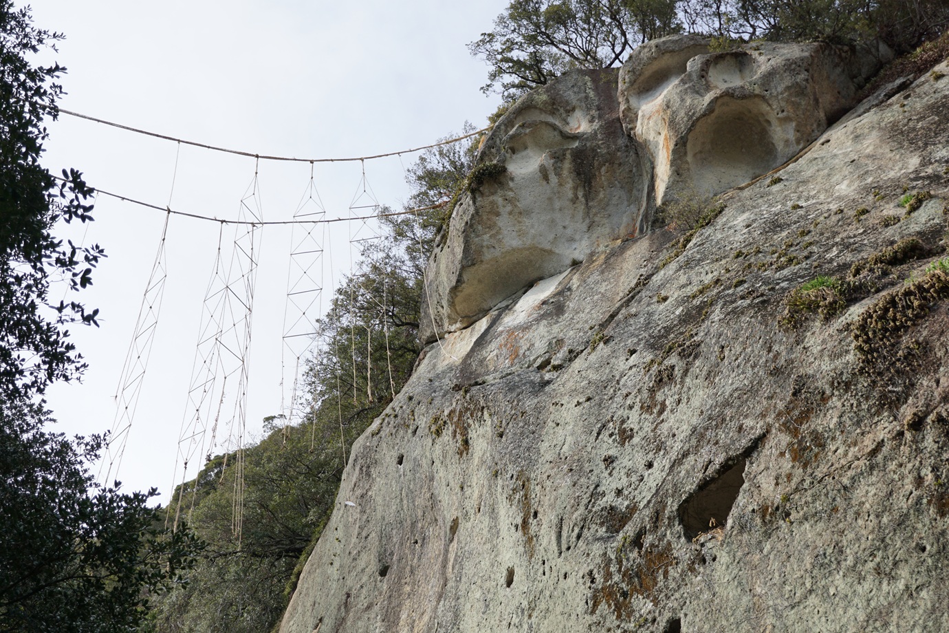 上を見上げると、綱が張られているのが見えます。