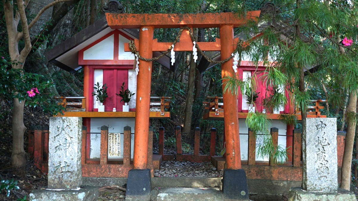 参道の途中に、火神社・中ノ地蔵堂(ひじんじゃ・なか の じぞうどう)があります。