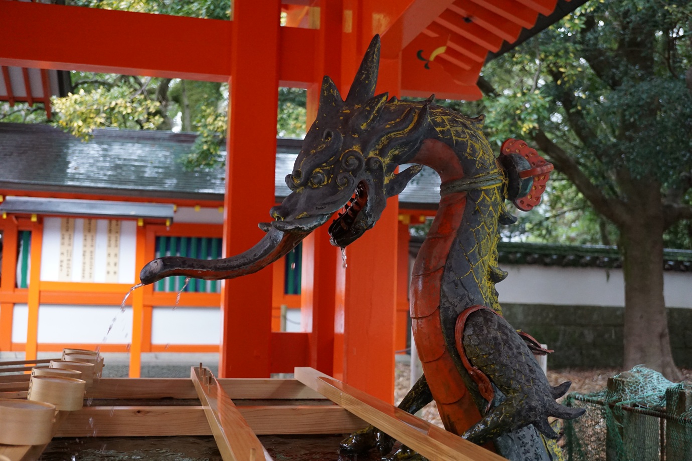 手水舎を守護しているのは、金毘羅(クンビーラ)と呼ばれるワニか、摩伽羅(マカラ)と呼ばれる伝説の怪魚だと思います。